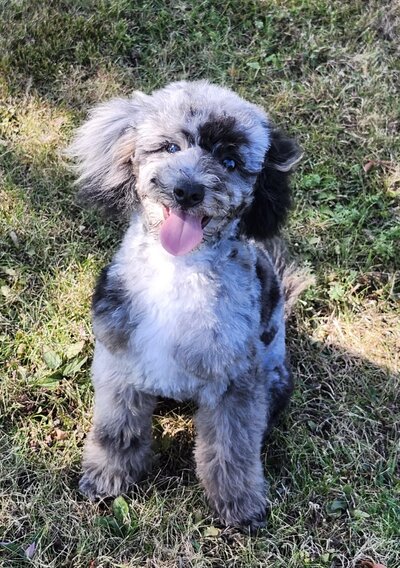 Denim is such a sweet loving boy !! Cute as a button, he has an astronomical desire to please.. He is playful, comical and active but has a good off switch, He loves to play fetch. Our BIGGEST cuddle bug !!